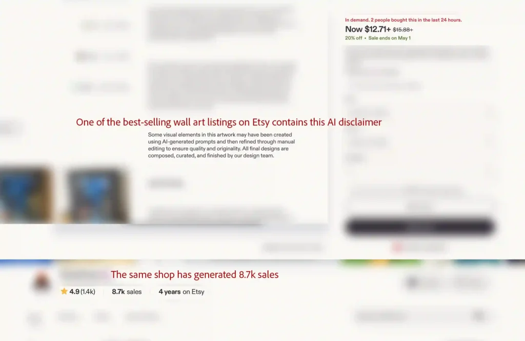 Furthermore, as shown in the AI disclaimers above, you can clearly state that it is not ‘all AI’ and that much more human effort goes into these creations. This can surely send a message to shoppers reading it that they are not buying a low-value product. Furthermore, Etsy shoppers who otherwise do not prefer AI-generated art may consider buying one if they see value in it.