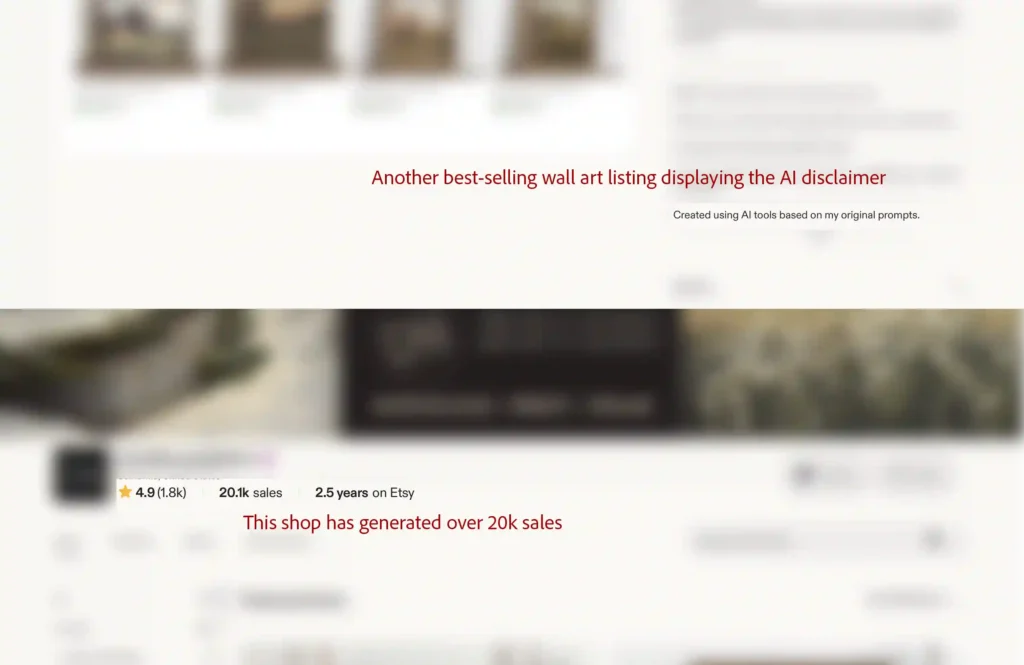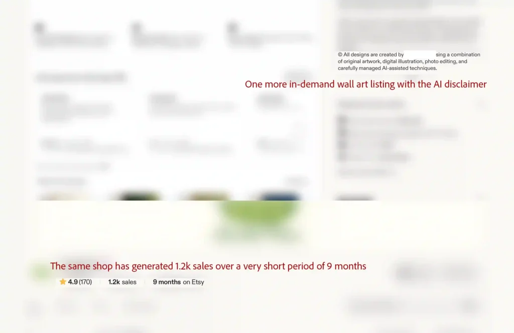 Below are screenshots of the AI disclaimer from successful AI Wall Art Shops.