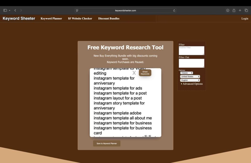 Keyword Sheeter is a completely free keyword tool that generates an endless list of keyword ideas. Since you get a substantial volume of keywords to analyze, this tool can be used as a starting point for niche research. Furthermore, this tool can also provide useful long-tail keywords to improve organic traffic.