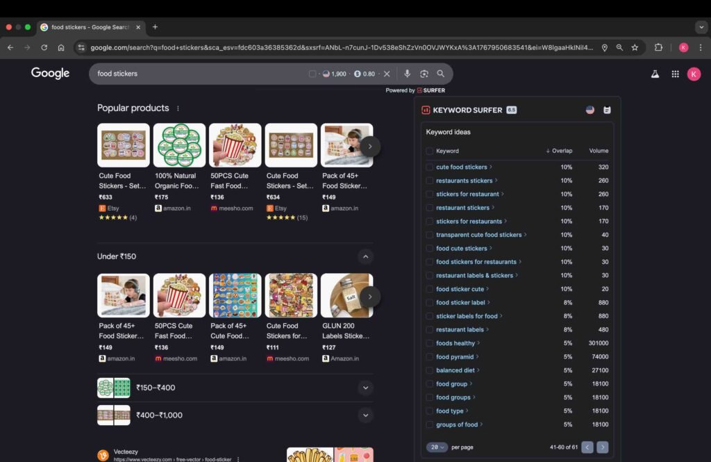 In the screenshot below, you can see that the tool displayed a list of keyword ideas along with their monthly searches for the Google search “food stickers.”