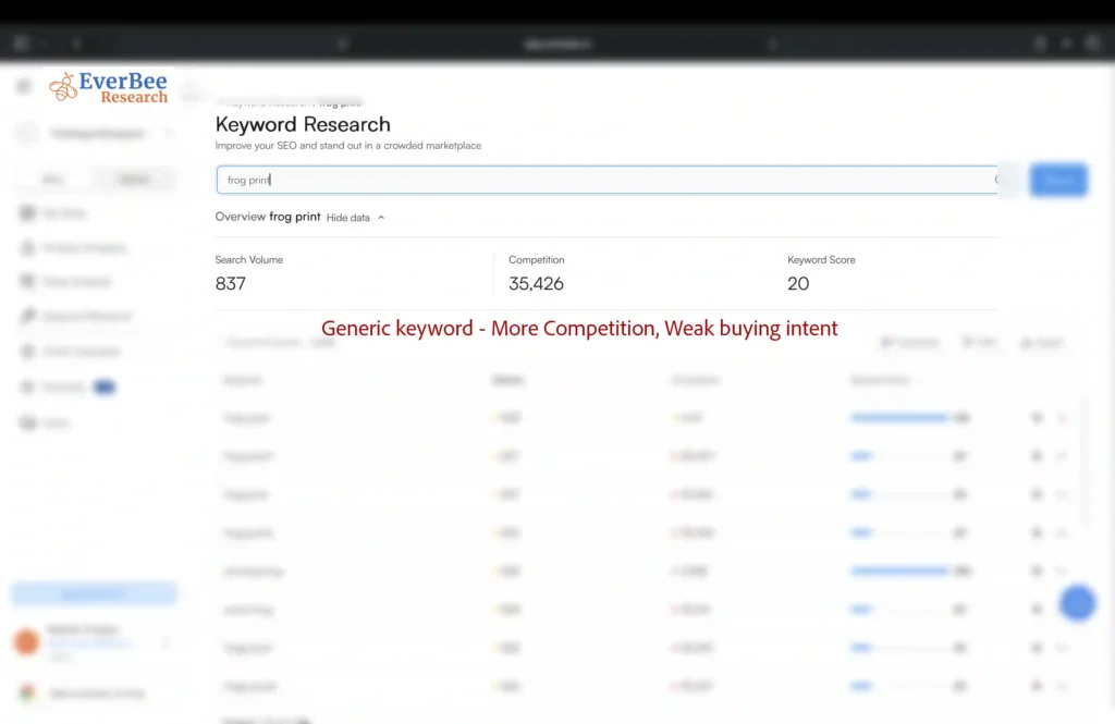 Frog Print ❌ —> Weak Buying Intent —> More Competition —> Difficult Sales